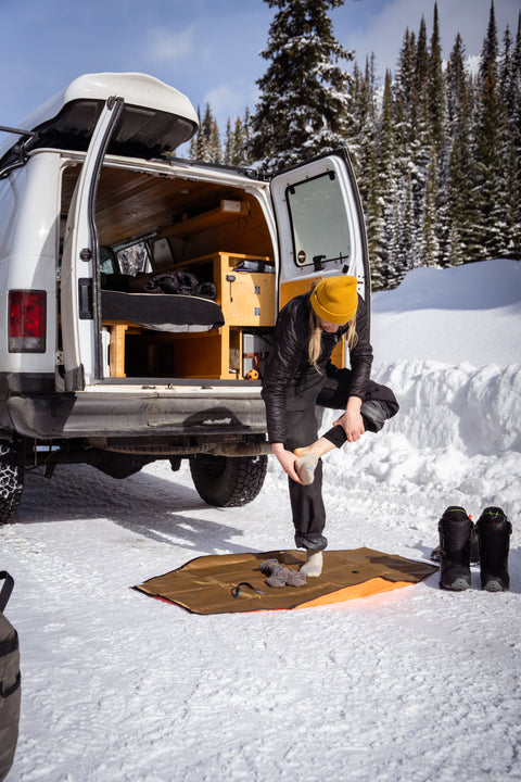 A foldable, padded, and water resistant ground cover for when you want place to chill. The Utility Mat conveniently folds up so you can easily take it with you wherever you go. Both sides are made using EcoPack material which makes both the top and the bottom highly water resistant and reversible. Engineered foam panels give you some cushion from the ground below. Perfect for camping, the beach, changing in a parking lot, going on a picnic, and wherever else you may find a need to chill.
