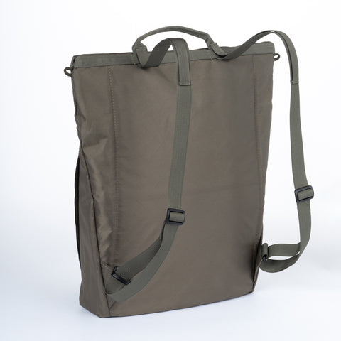 Over the shoulder Tote Strap quickly converts back to a back pack one handed with out the need for any extra buckles or attachments