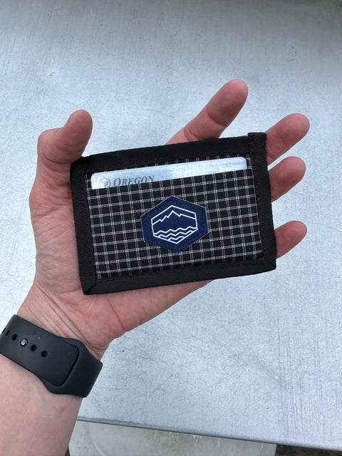 Crafted from the same materials as our bags, this slim card wallet efficiently stores up to 8-10 cards and cash. Featuring an ID window on the back, a front card sleeve, and a center pocket for folded bills, it repurposes fabric scraps to reduce waste in our studio.