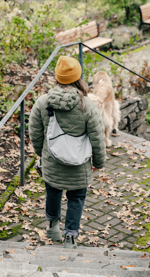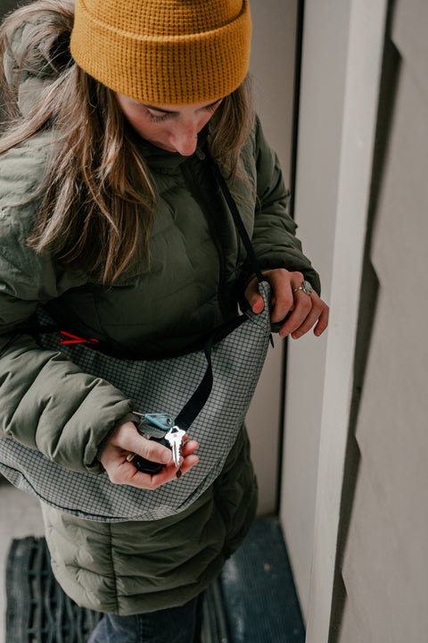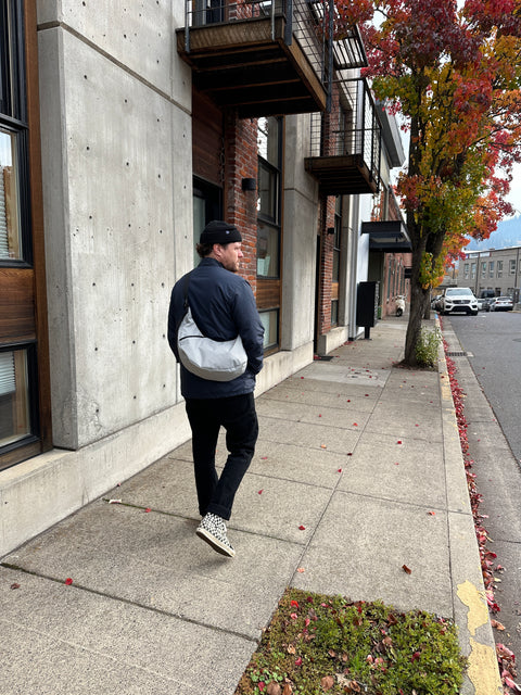 This versatile crossbody bag is perfect for everyday use or travel. Handmade in Hood River, Oregon with environmentally friendly and water resistant materials. A spacious front stash pocket and a large main zippered pocket keeps all your essentials within easy reach. The interior features an aluminum key clip and two slip pockets for organizing smaller items.