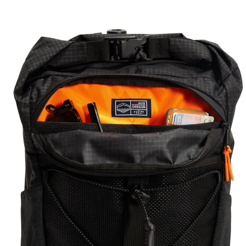 A versatile, lightweight pack built for travel, hikes, and everyday carry. Crafted from sustainable materials and designed with adaptability in mind, it features a Fidlock roll-top closure, hydration compatibility, and dual ultra stretch side pockets. A removable foam back panel doubles as a camp seat or pad, and also allows the bag to be fully stowed or stashed for travel. Thoughtfully built to move with you—on trail, in transit, or wherever the day leads.
