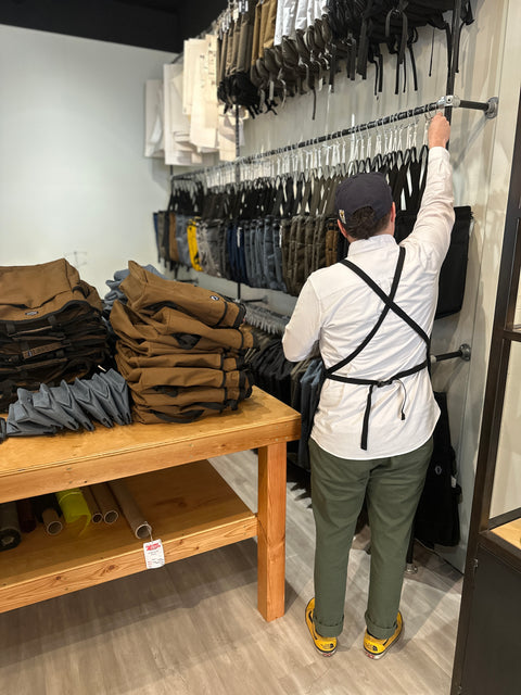 A Durable Canvas Apron with multiple pockets and lash points great for the Kitchen, Workshop, Sewing, Tuning your Skis / Snowboard....the uses are endless. An adjustable one size fits all cross back design with a side release buckle closure thats easily adjustable. Made using sustainable materials in Hood River, Oregon USA.